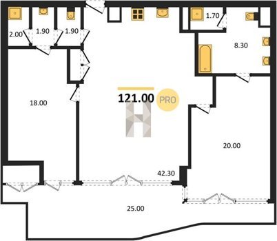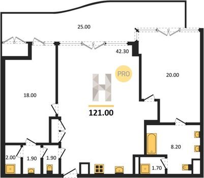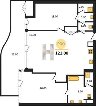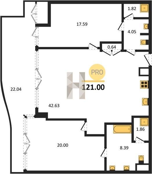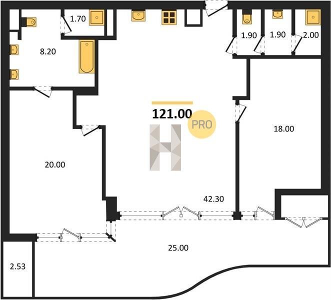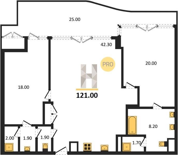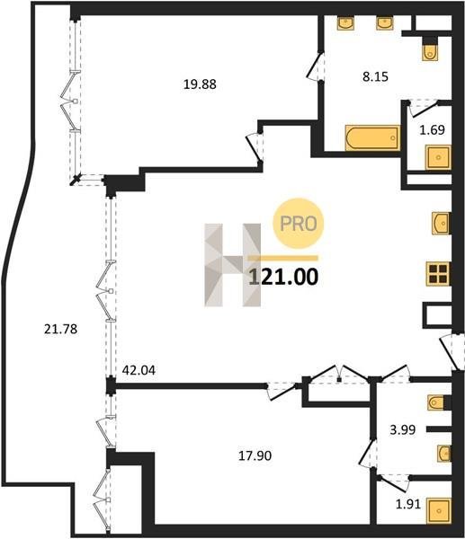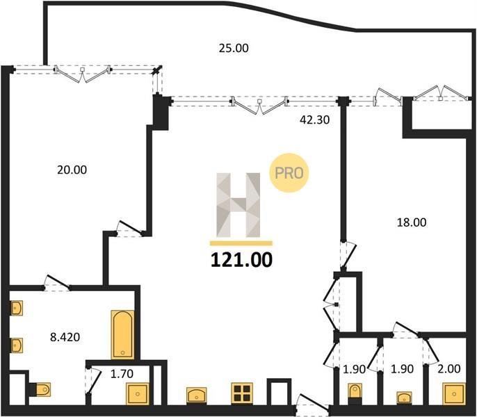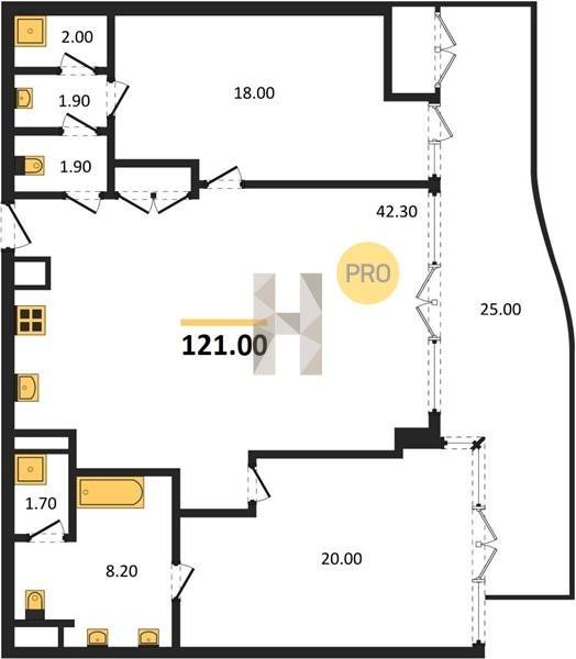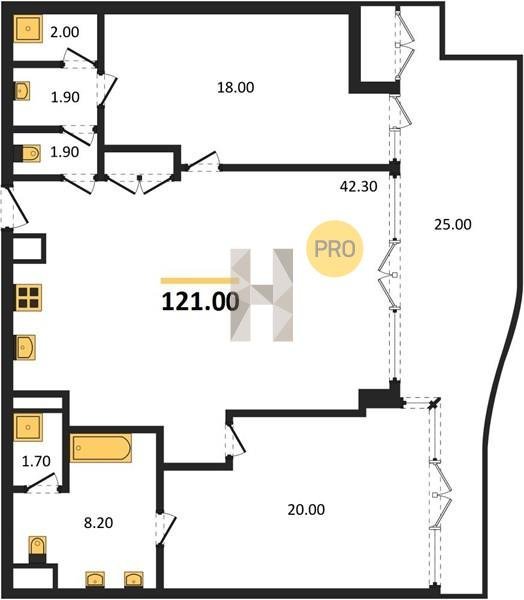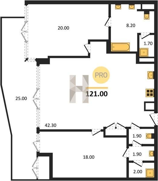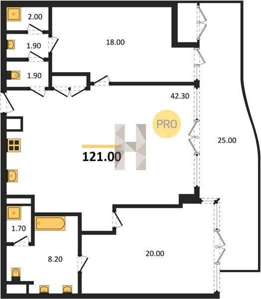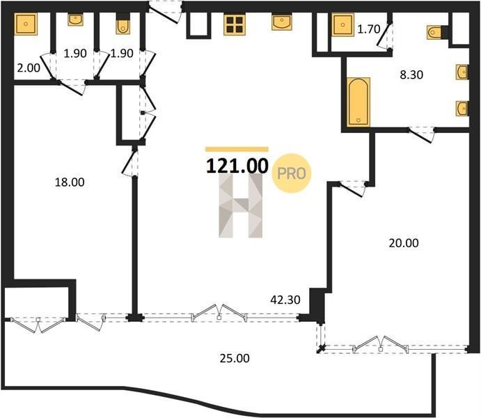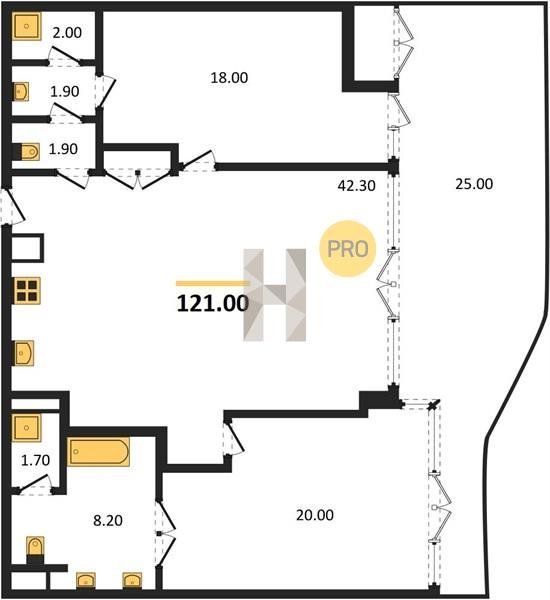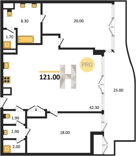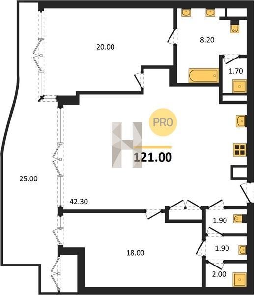 Площадь от 121 м2
