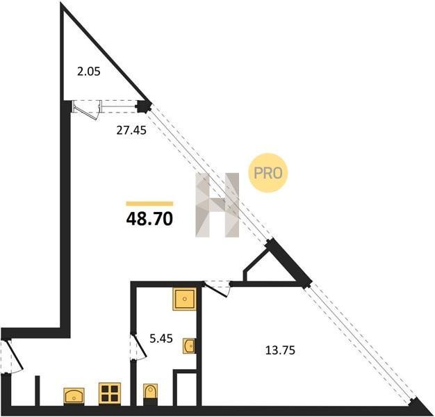 Площадь от 48.7 м2